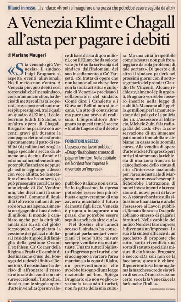 "Il sindaco di Venezia Brugnaro vuole mettere in vendita